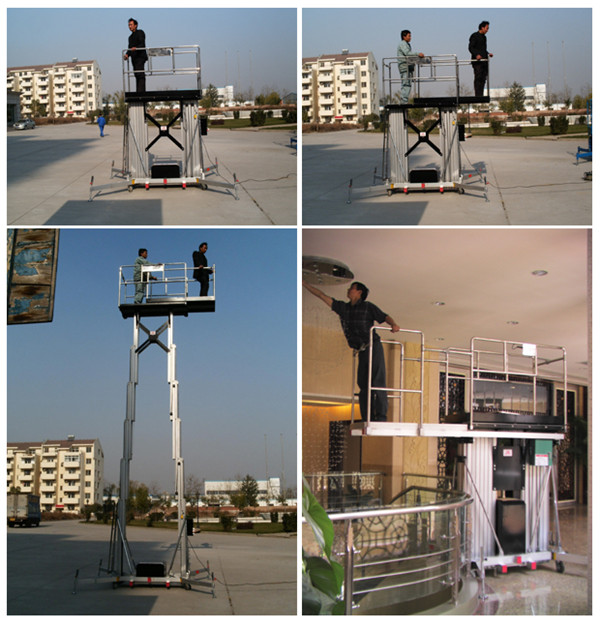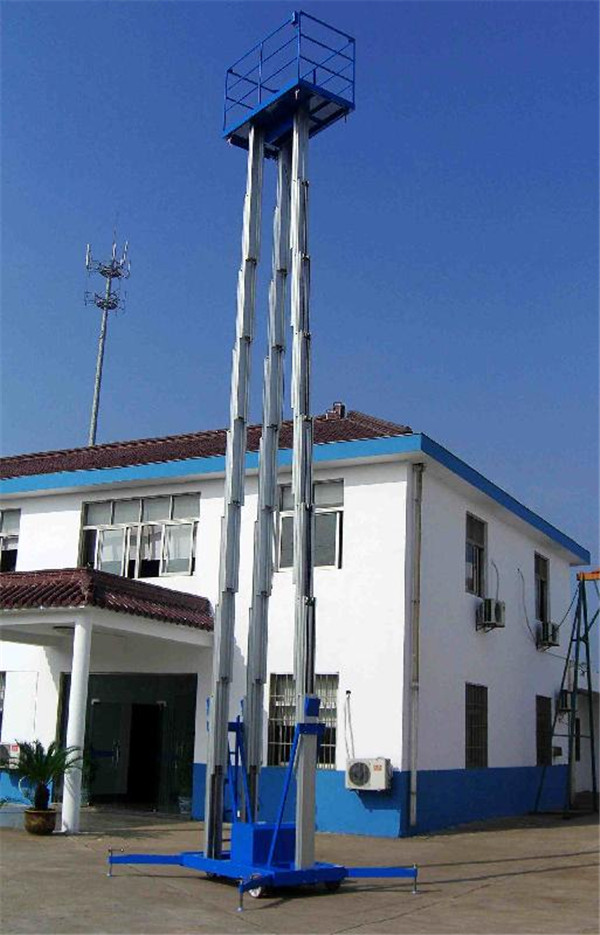 單柱鋁合金升降機:該系列產(chǎn)品為室內(nèi)型,廣泛適用于星級酒店,大型超市等各行業(yè)大廳、廠房內(nèi)的高空作業(yè), 具有升降平衡,操作方便,能進入一般門廳,可隨意進出電梯且耗電少、工作時不傷 地面,可用于貼墻工作及探出作業(yè),工作無死角。