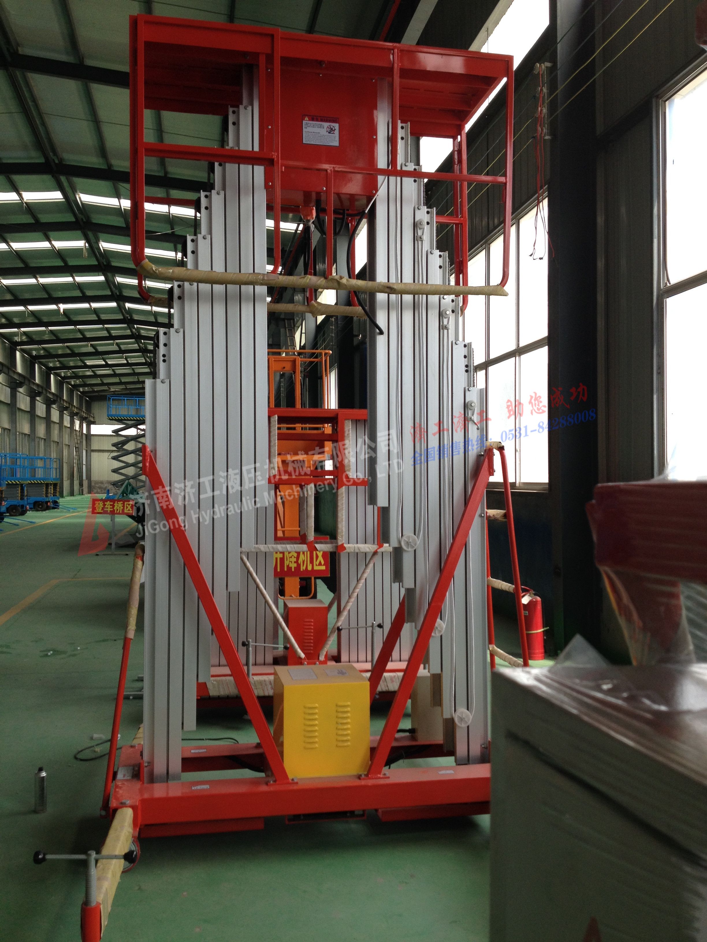 雙柱鋁合金升降機:全新設計的新一代產(chǎn)品,整體采用高強度鋁型材精制而成由于型材強度高,使升降臺的偏轉(zhuǎn)與擺動極小。雙柱鋁合金升降機采用雙桅柱式結(jié)構(gòu),載重量大,平臺面積大,穩(wěn)定性極好,運轉(zhuǎn)靈活,推行方便。它輕盈的外觀,能在極小的空間內(nèi)發(fā)揮最高的舉升能力。鋁合金升降機分為單立柱鋁合金升降機,雙立柱鋁合金升降機,三立柱鋁合金升降機、四立柱鋁合金升降機。