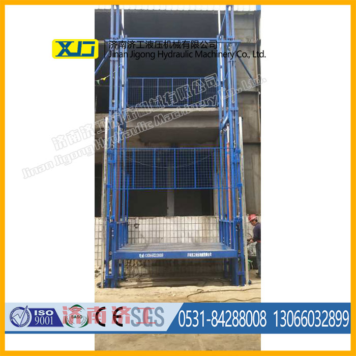 載重能力大,室外貨梯簡易電梯是靠液壓千斤頂的原理來頂升轎廂的,可采用多個油缸同時作用提升載重的轎廂。 噪聲低,液壓系統可遠離井道設置,隔離了噪聲源。