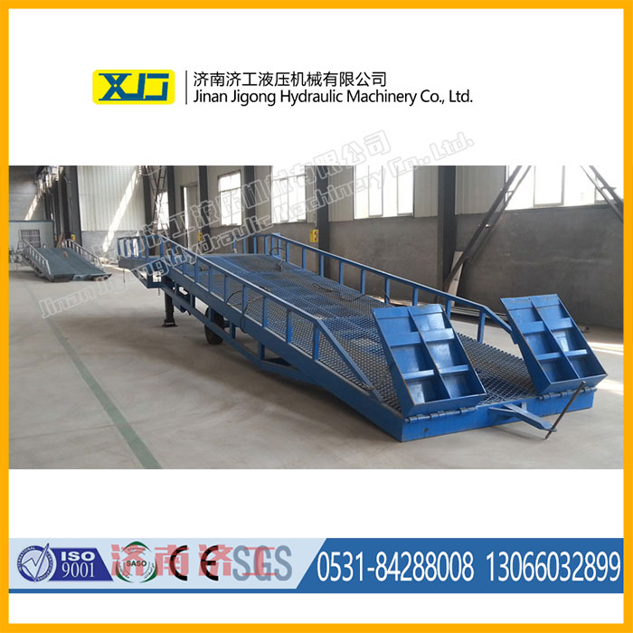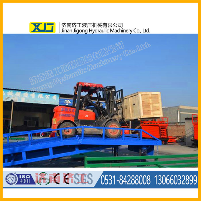 1. 用于貨物裝卸位置不固定場合的用貨物裝卸輔助設備,是實現貨物快速裝卸的專用物流機械,通過它使叉車等搬運車直接進入貨車、列車車廂裝卸貨物,在提高工效的同時又能充分保障作業安全。 2. 移動式登車橋的頭部設計有兩個互成90°的登車跳板,這種設計可以使用戶能夠合理地利用場地作業,減少作業場地,具有很好的場地適應性。 3. 采用前腿支撐方式,穩定性好; 4. 高度調節范圍大,適合各種工況; 5. 坡度低,配有安全鏈條和標示,安全性好; 6. 臺面均設計為網格狀鋼板,這種結構能證具有很好的強度,又具有防滑功能,還能方便地清掃工作臺面,使它能經常地保持清潔、美觀。 7. 無須外接電源,通過手搖泵作動力能輕松地在其整個調整范圍內按50mm的倍數進行高度的調整。可以充分適應各種不同高度的貨車。 8. 需要移動時,可利用叉車作牽引,配用隨機配備的快夾即可方便地進行移動,從而實現貨物的快速裝卸。 | |